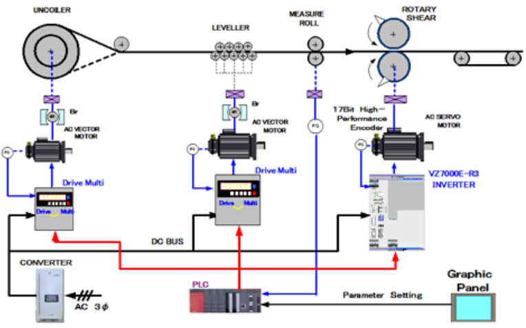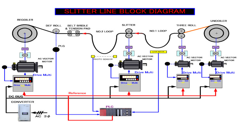 本系統采用矢量電機控制,具有速度/張力控制精度高等優異特點,控制系統有三種模式(雙活套、單活套、重卷直拉)可切換,使用共直流母線方式,使再生發電負載回收能量。提高效率,降低不良量,廣泛受到諸如寶鋼、武鋼、鞍鋼、本鋼、中鋁等大型企業的青睞。